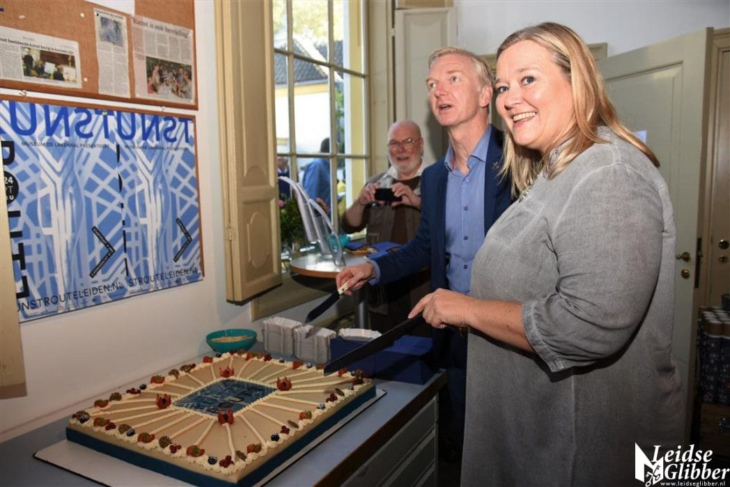 Tijd voor de Kunstroute taart die werd aangesneden door wethouder Robert Strijk en Marijn Kramp.