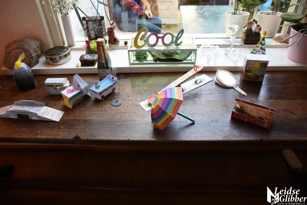 Hij had veel werk meegenomen zowel zijn bekende kistjes als ingelijste collages.