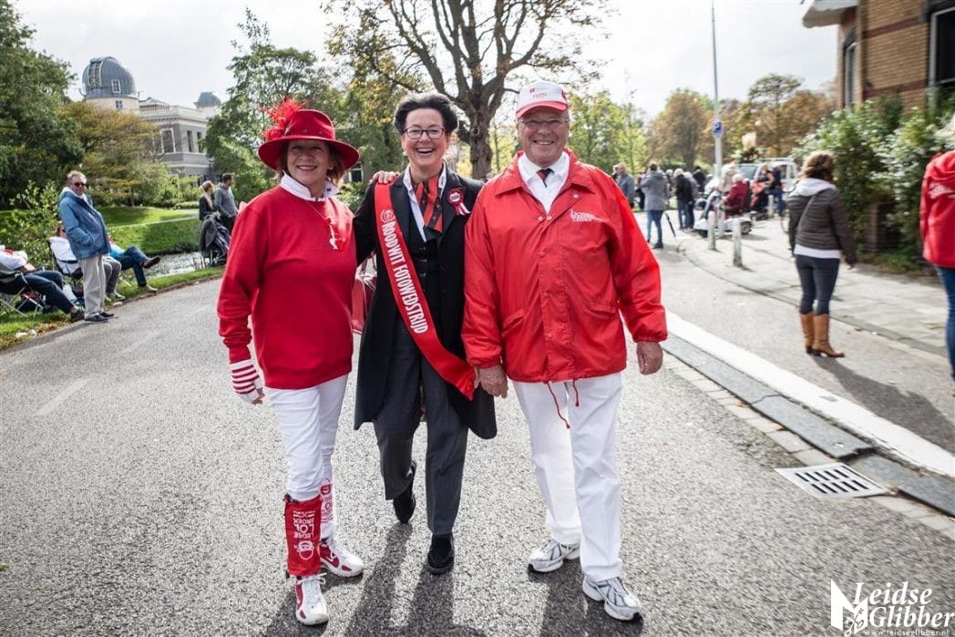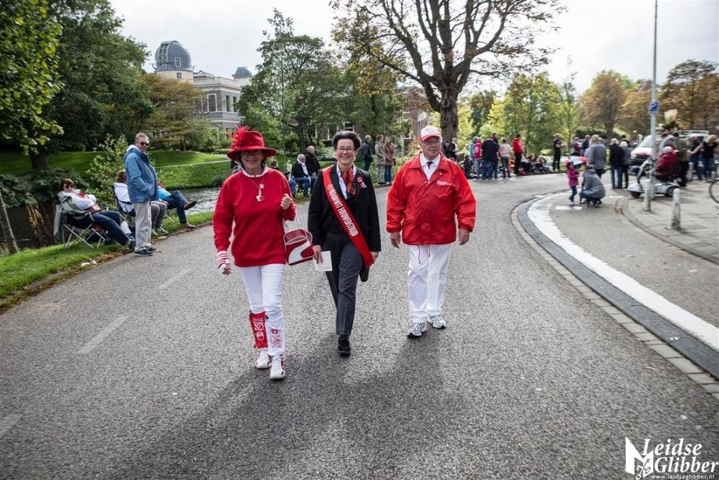 Er zijn tijdens de 3 Octoberoptocht weer veel toeschouwers in hun rood-witte outfit op de foto gezet. Dit jaar liep fotograaf Hans van Egdom voor de stoet uit om iedereen op de foto te zetten. De jury bestaande uit Henny Buschman, Moniek van Sandick, Frits Rijksen en Erick van Zuylen (niet op de foto) wezen aan wie er in aanmerking kwam om op de foto gezet te worden en wellicht volgende week zaterdag in de prijzen valt.