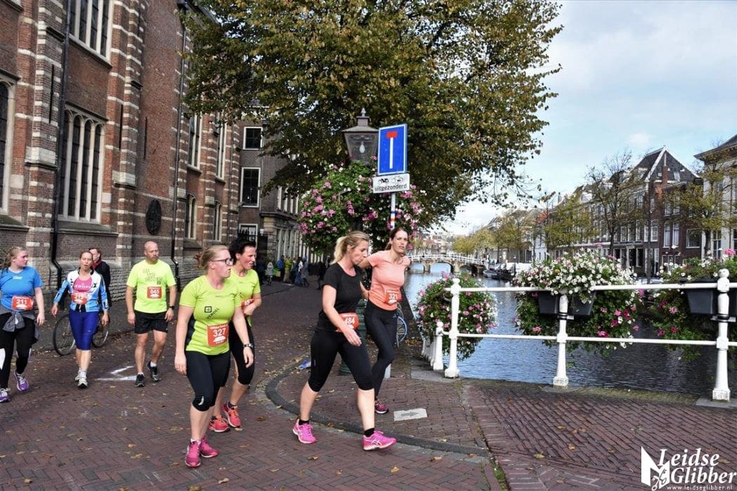 De zon scheen toen de 500 lopers begonnen aan hun tocht door Leiden.