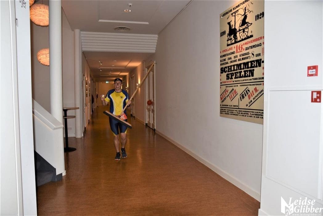 Ondanks dat ik de 6,5 kilometer op de scooter gedaan heb werd ik in de Stadsgehoorzaal toch nog ingehaald door de laatste loper. Bij de GlibbertTreel was geen bezemwagen, maar een bezemloper.