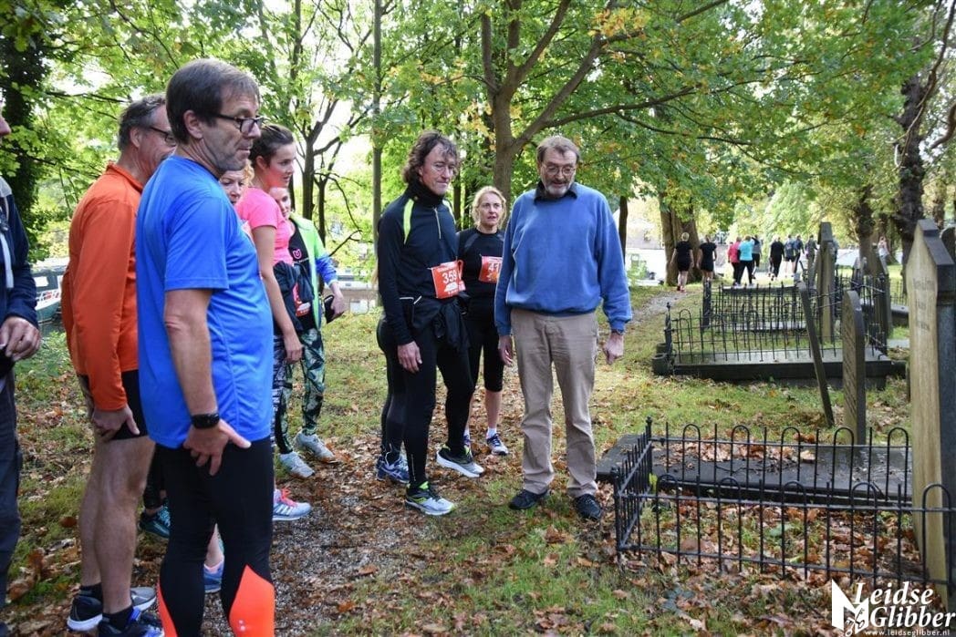 Bestuurslid Hein van Woerden wees de lopers op het graf van de moeder van Vincent van Gogh.