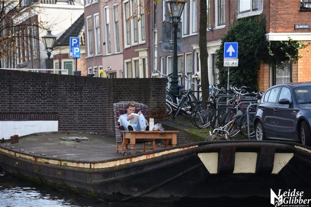 Fijn zo’n oude schuit voor je deur, kan je heerlijk op zonnen en studeren.