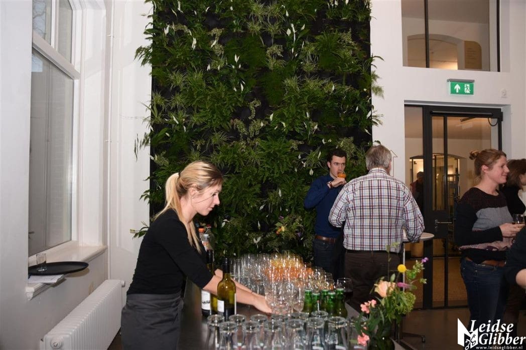 Tijdens de ontvangst viel het mij op hoe prachtig de plantenwand in het gerenoveerde Vethgebouw is.