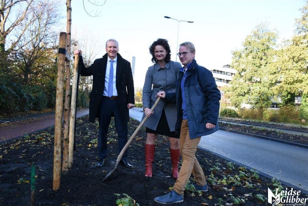 Samen met de bestuursleden werd het laatste boompje in de omgeving van de rotonde ingegraven. Als wethouder heb je het niet altijd makkelijk en kost politiek vaak een hoop graaf- en spitwerk.