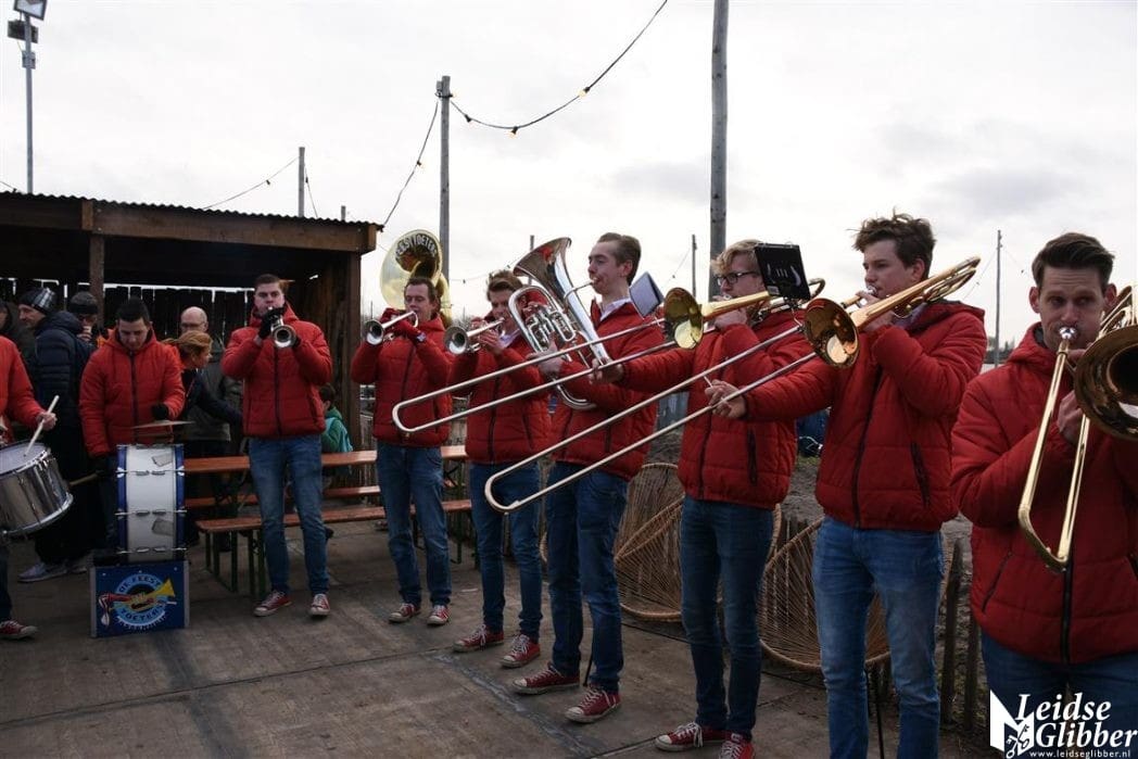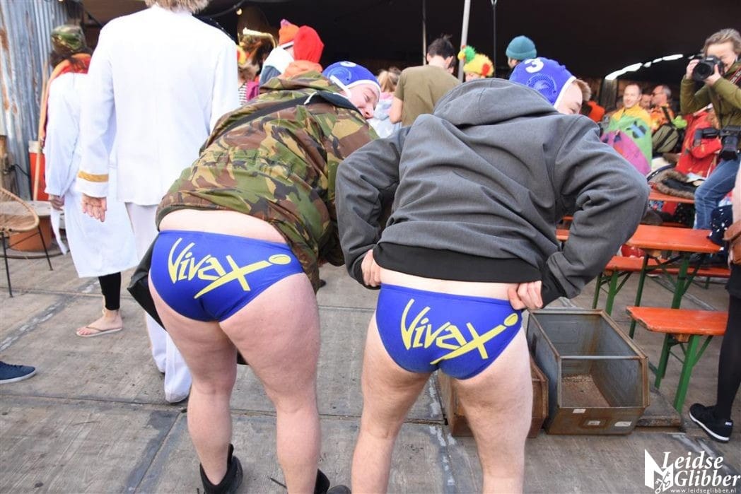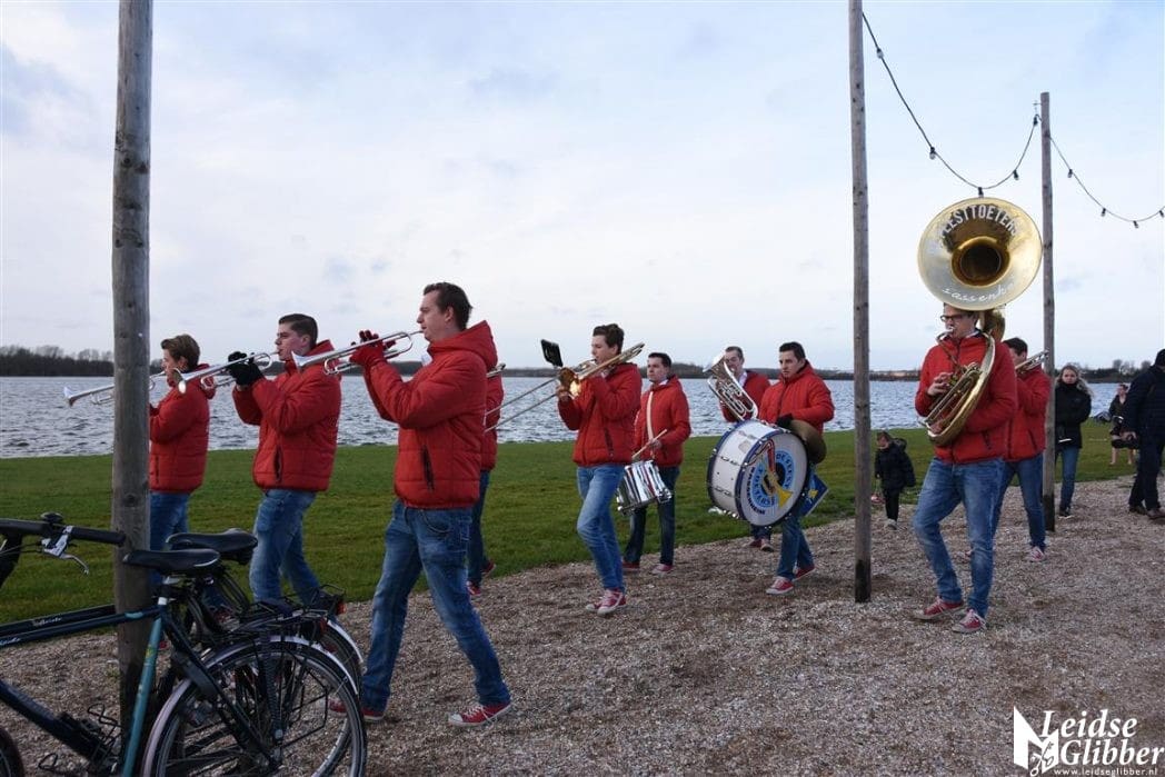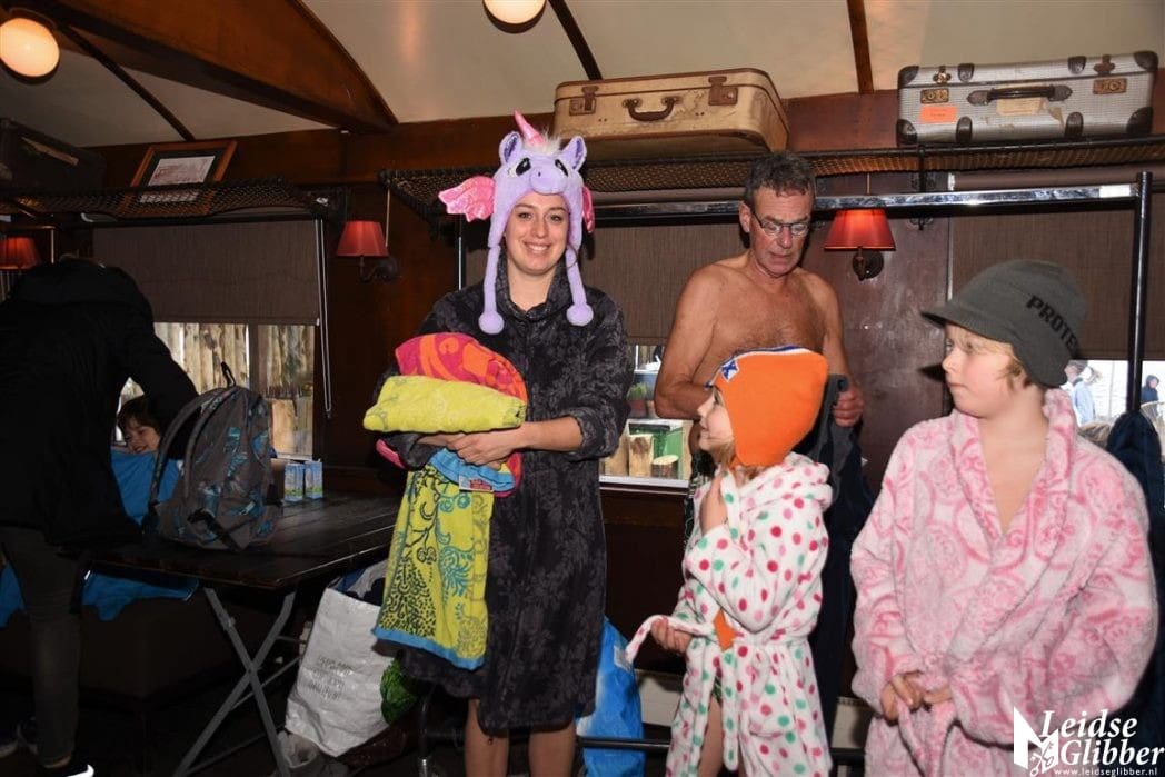 Tijdens het omkleden werden de deelnemers vast opgewarmd met de muziek van blaaskapel de Feesttoeters.