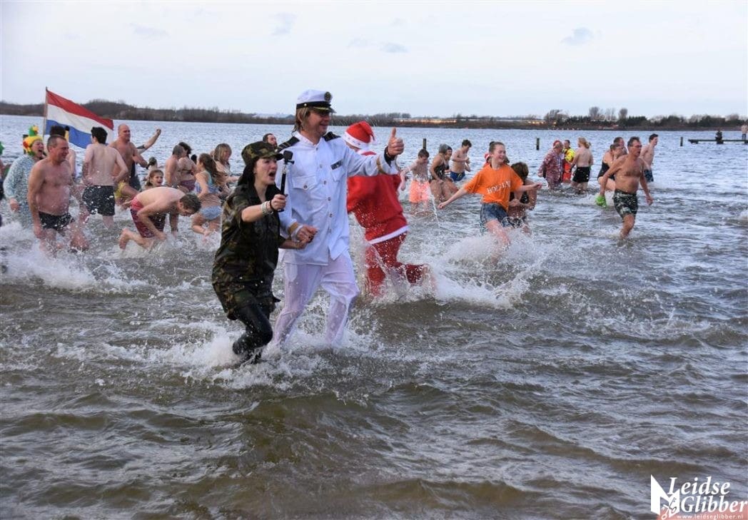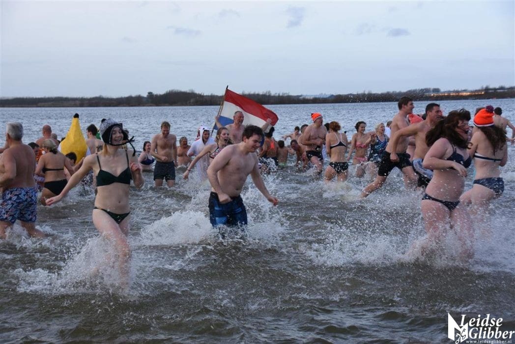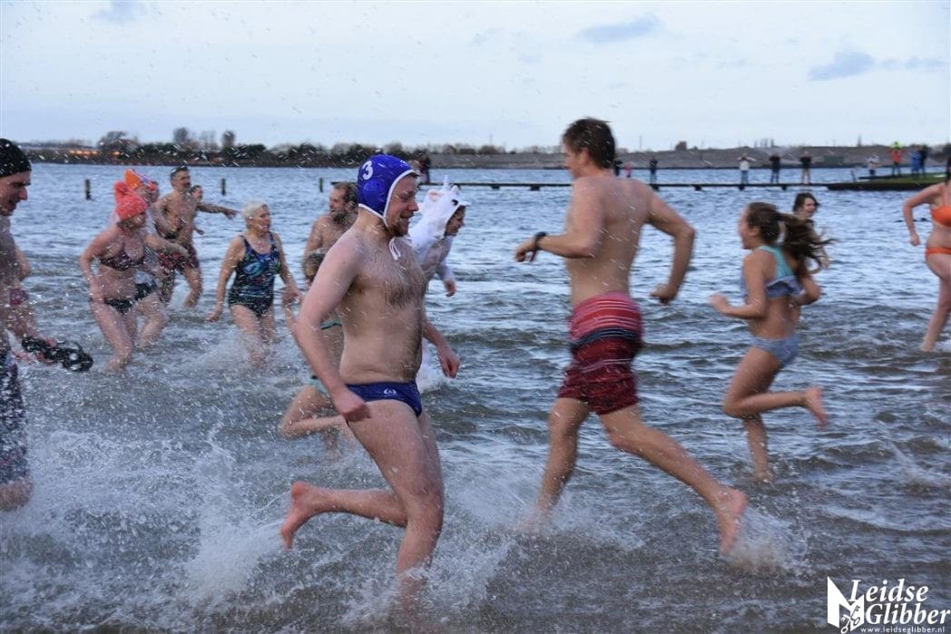 Na het aftellen renden de deelnemers massaal het koude water in.