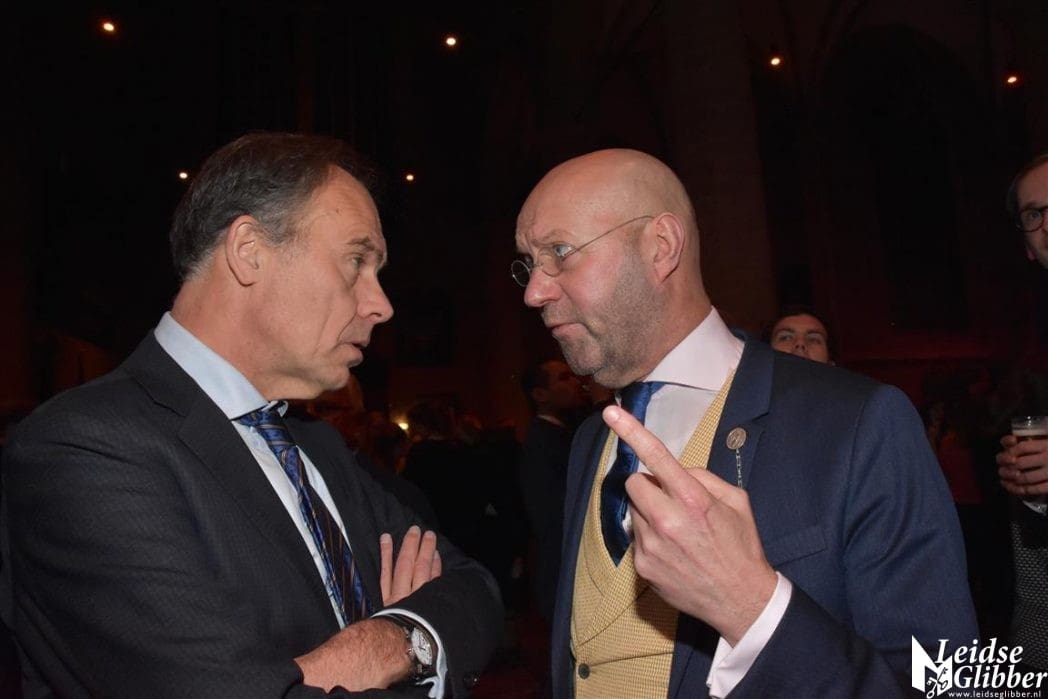 Omdat het zo’n beetje de eerste echte grote nieuwjaarsborrel is ziet iedereen elkaar weer voor het eerst na de feestdagen, zoals bijvoorbeeld rector magnificus Carel Stolker en de pedel van de universiteit Erick van Zuylen.