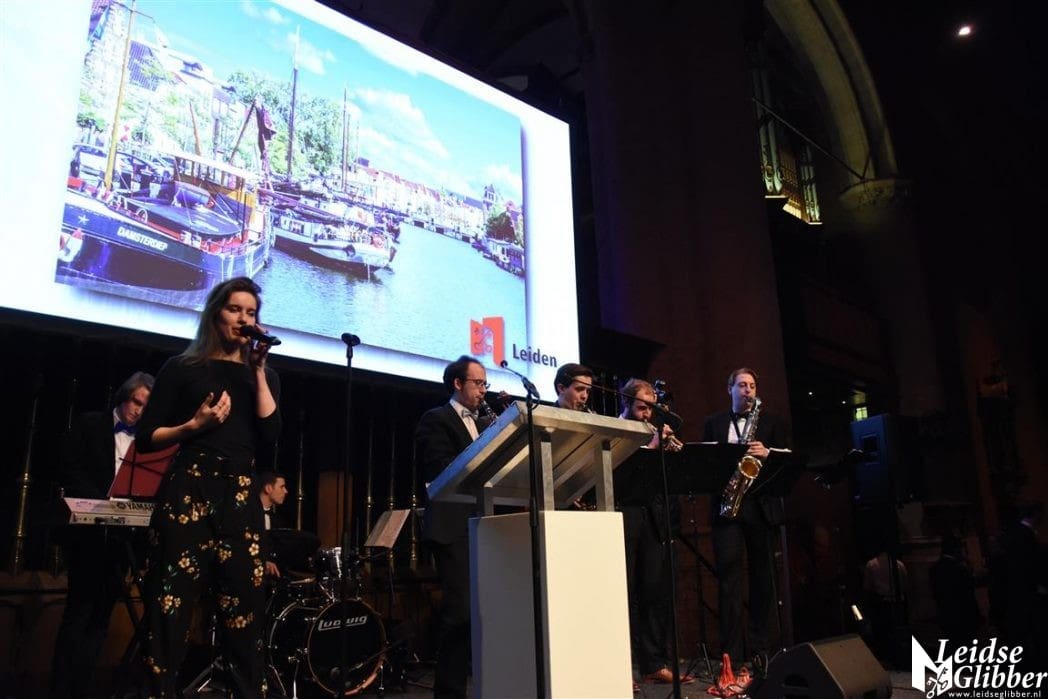 Na de toespraak zingen we sinds enkele jaren gezamenlijk het Leids volkslied. We komen natuurlijk behalve voor de toespraak ook voor de borrel. Chef de Kabinet van de gemeente Leiden voelde dit feilloos aan en vroeg de band dan ook het Leids volkslied in uptempo te spelen.