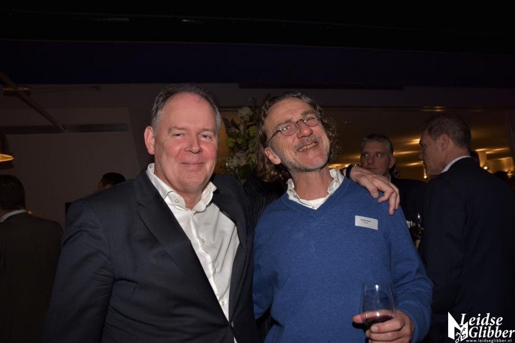 Op deze receptie liep ook weer van alles door elkaar wat betreft bedrijven of organisaties, maar het leuke is ze hebben toch allemaal wel iets met elkaar te bespreken. Kees van Leeuwen van theater Inns Blau en Rolf Marselis van de Leidse Sport Federatie waren zodoende ook druk in gesprek.