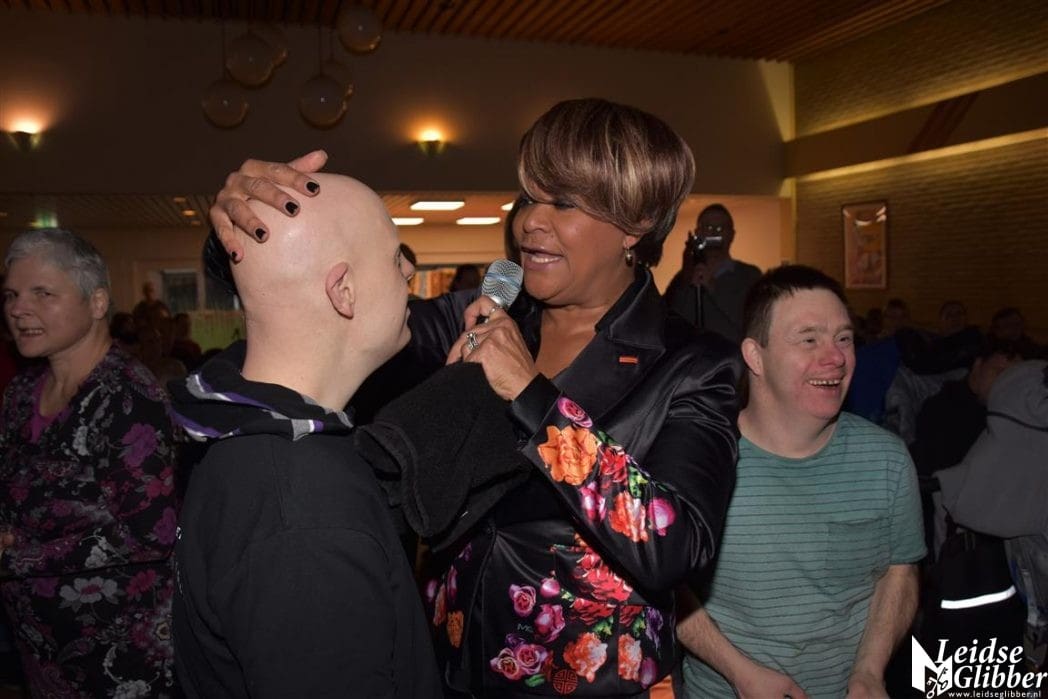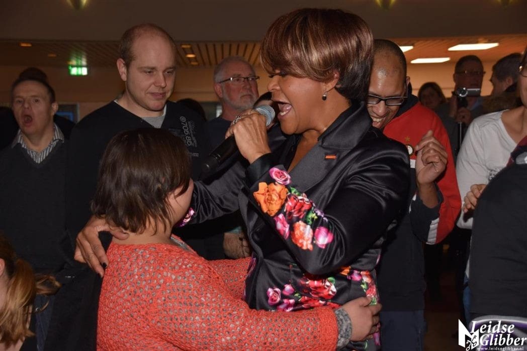 Ruth Jacott was totaal overdonderd dat de bewoners van Swetterhage haar hele repertoire uit het hoofd kenden. Vlak voor haar optreden zei ze nog, ik hoop dat ze het een beetje leuk vinden en misschien wel herkennen. Ik verzekerde haar dat ze in Swetterhage alles feilloos meezingen, dat had ik al een paar keer bij andere artiesten gezien tijdens de gehandicapten tour van de 3 October Vereeniging. Pffffff gelukkig kreeg ik gelijk en had ik niet in mijn enthousiasme overdreven.