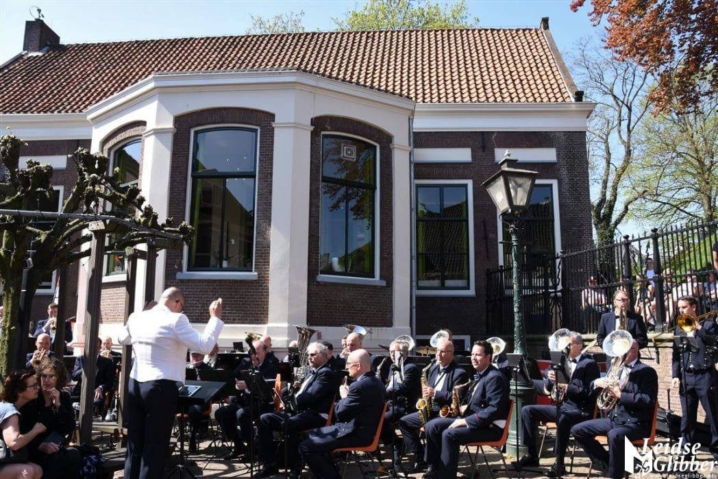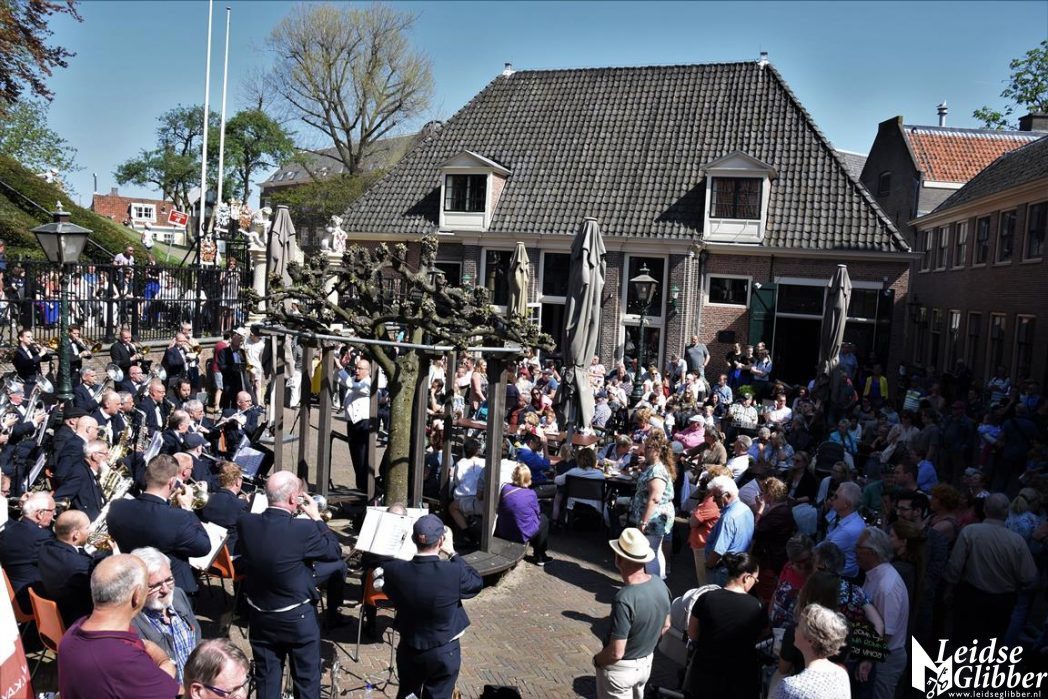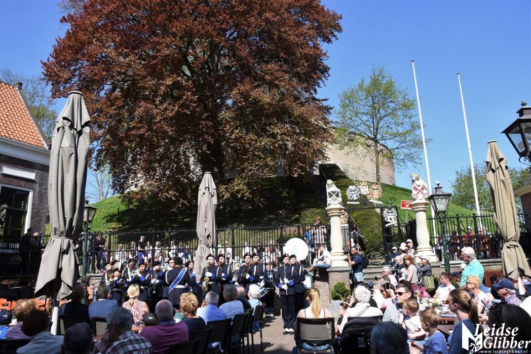 Na bijna 3 uur kwam er een einde aan de concerten en maakten de orkesten zich op om terug te lopen naar het clubhuis. Helaas was het hier te smal om te marcheren, anders had het een mooi plaatje geweest met De Burcht op de achtergrond.
