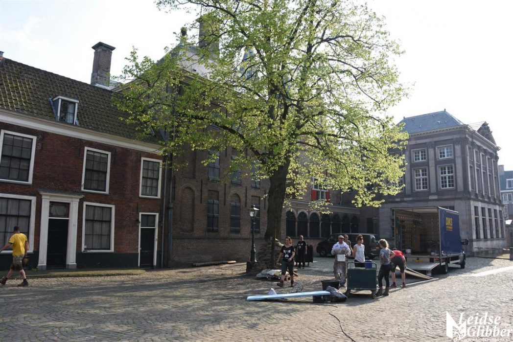 Op het plein van het Gerecht werd ook druk gewerkt om de omgeving en de huizen om te bouwen naar 1945.