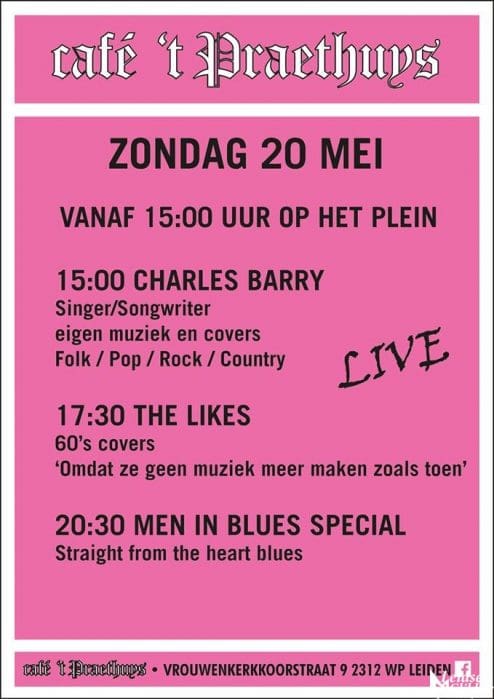 Zondag de hele middag en avond muziek bij Café ’t Praethuys tijdens muziek op het plein.