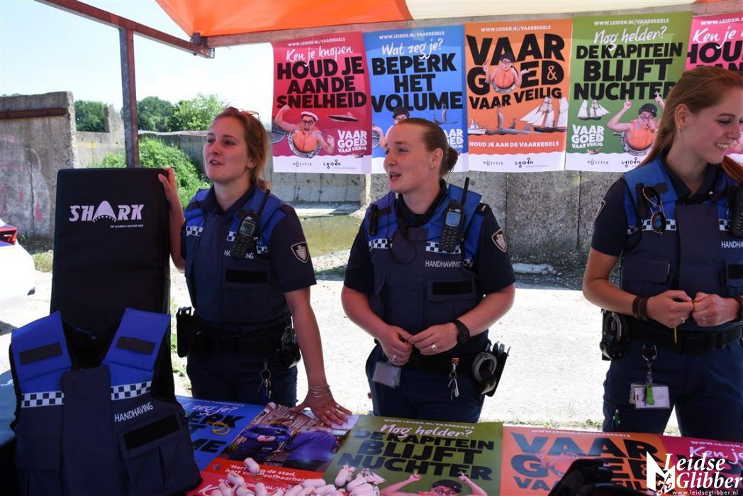 Handhaving was niet alleen met de scanwagen aanwezig, maar gaf ook uitleg hoe we ons in Leiden op het water horen te gedragen.