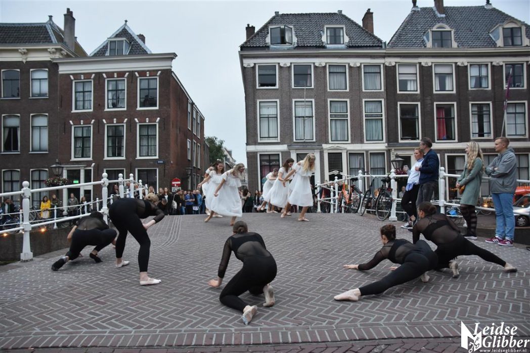 Op een van de bruggen op het Rapenburg werd ongeveer elk kwartier een korte balletvoorstelling gegeven.