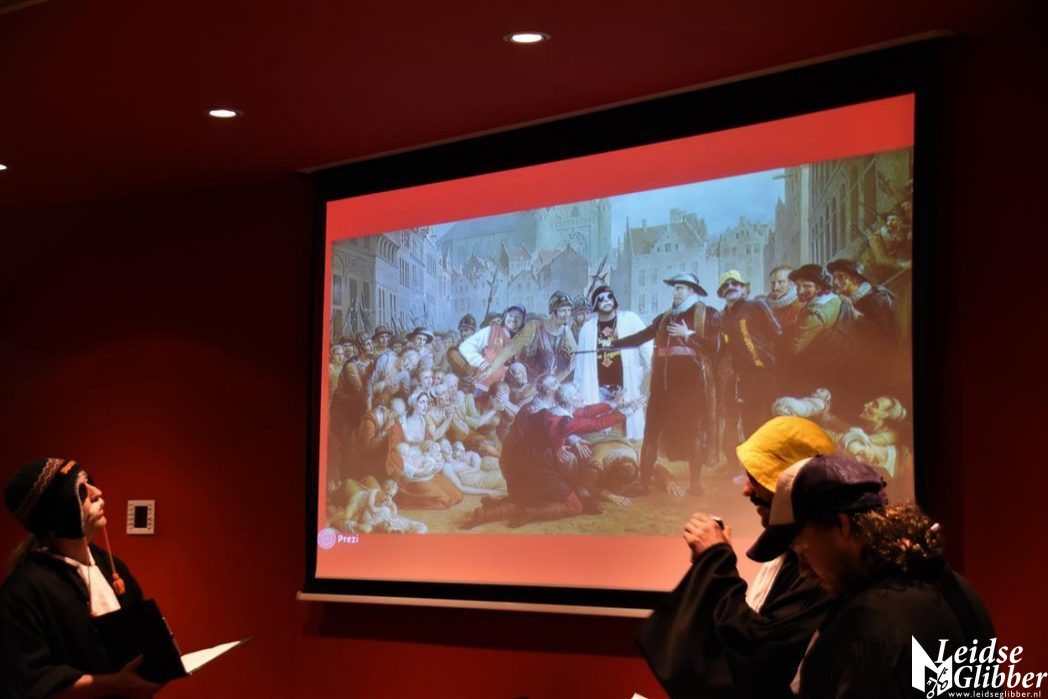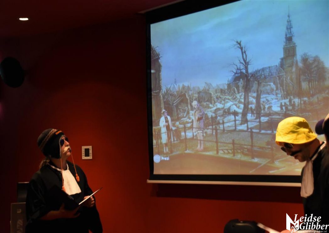 Helaas in een te klein zaaltje gaven de mannen van Barry Badpak geschiedenisles over Leidse helden, waarbij bleek dat Barry Badpak ook in het verleden al een rol in de geschiedenis gespeeld heeft.