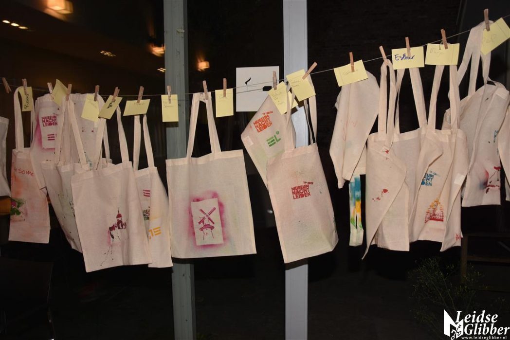 In het pand van Erfgoed Leiden was van alles te doen, zoals bijvoorbeeld je eigen linnen tas bedrukken.