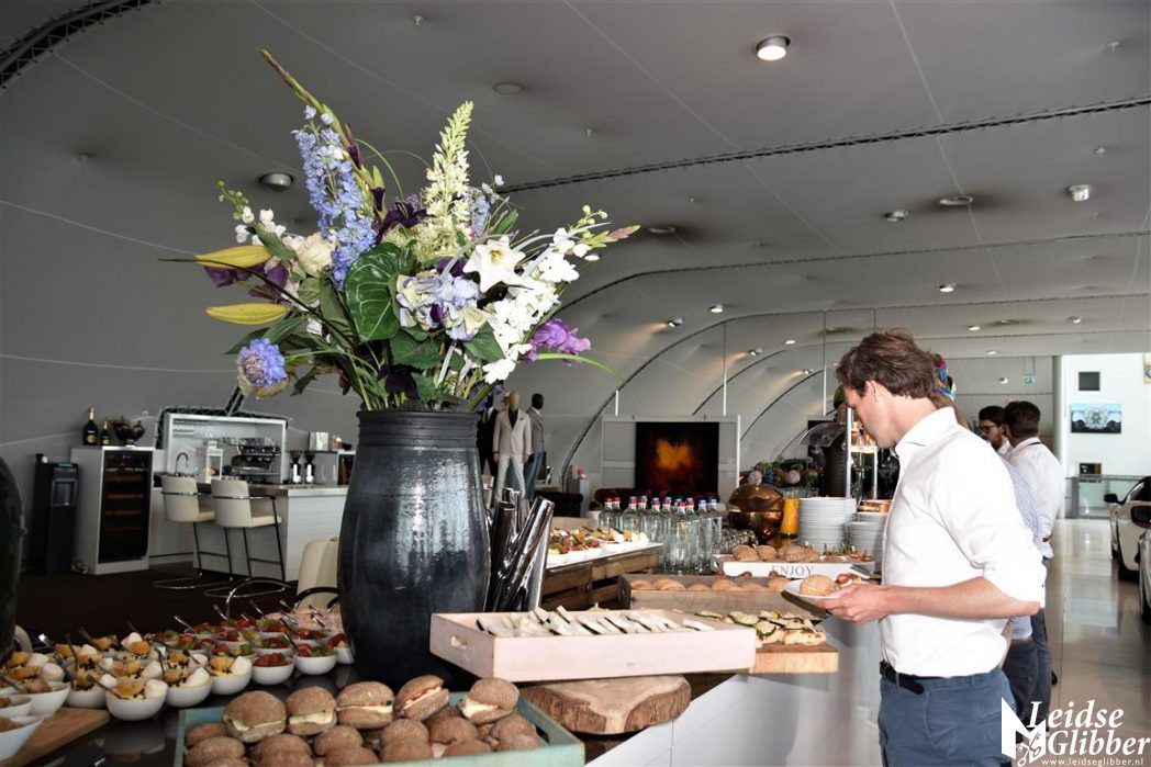 Naamgever en oprichter van De Clercq advocaten en notarissen, de 90 jarige mr. Paul de Clercq vlagde de eerste paar binnenkomende deelnemers af.