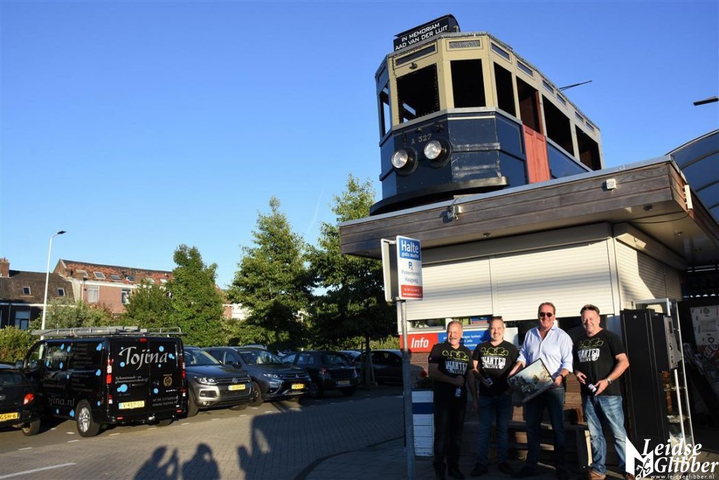 Nog maandenlang heeft de Blauwe Tram op het dak van het kassahuisje van het Stadsparkeerplan gestaan, tot een storm hem er afblies.