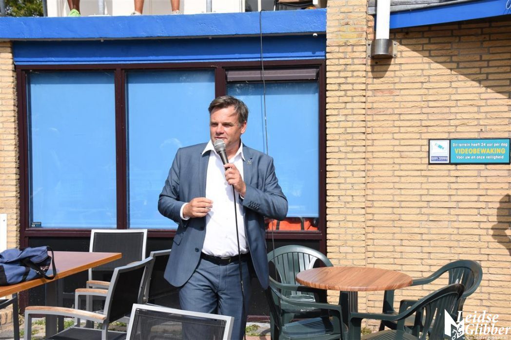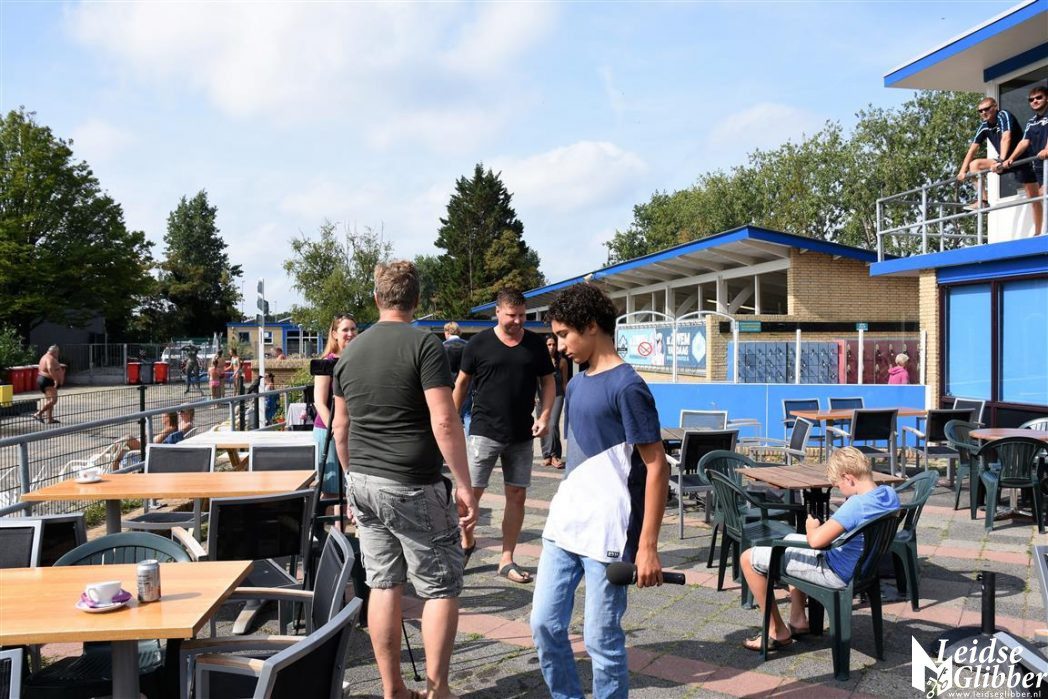 Dat was Paul toch even iets te hoog en kwam daarom snel naar beneden om op het terras Marloes en de overige zwembadgasten toe te spreken.
