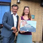 Voor de 100.000ste bezoeker had de wethouder nog een mooi cadeau bij zich, een abonnement voor 2019.