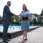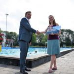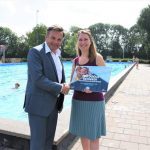 Om half 12 kwam de niets vermoedende Marloes Meijer naar het zwembad om even te gaan zwemmen. Bij de kassa werd haar verteld dat ze de 100.000 ste bezoeker van dit seizoen was en dat ze even later door wethouder Paul Dirkse in het zonnetje gezet zou worden.