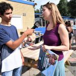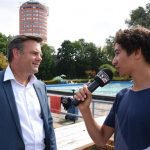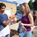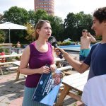 Marloes moest nog even geduld hebben voor ze kon gaan zwemmen, er moesten foto’s gemaakt worden en natuurlijk ook een interview voor Sleutelstad FM.