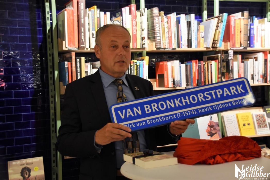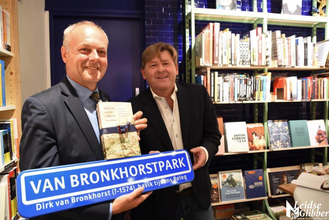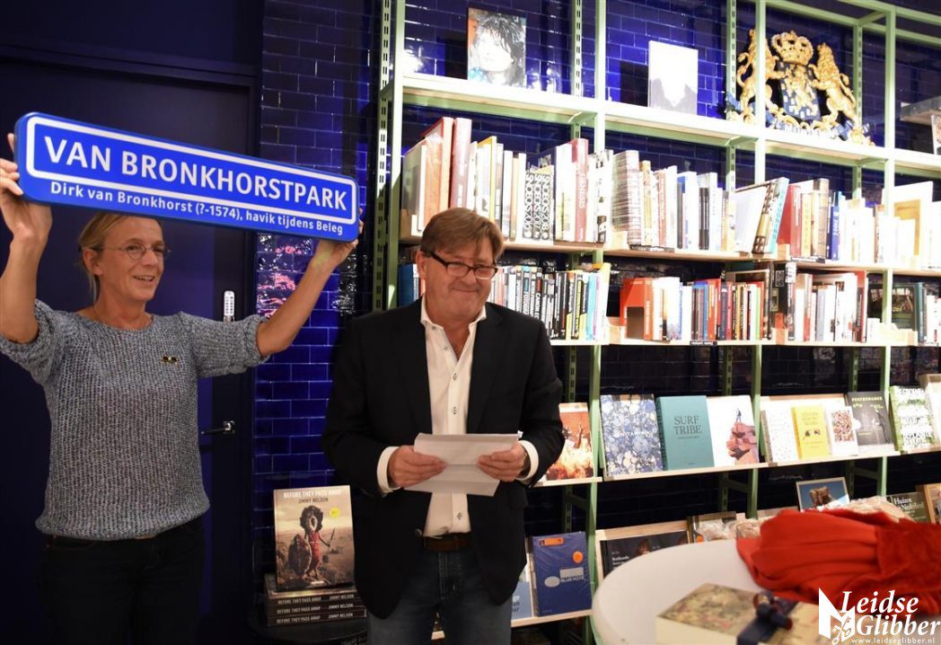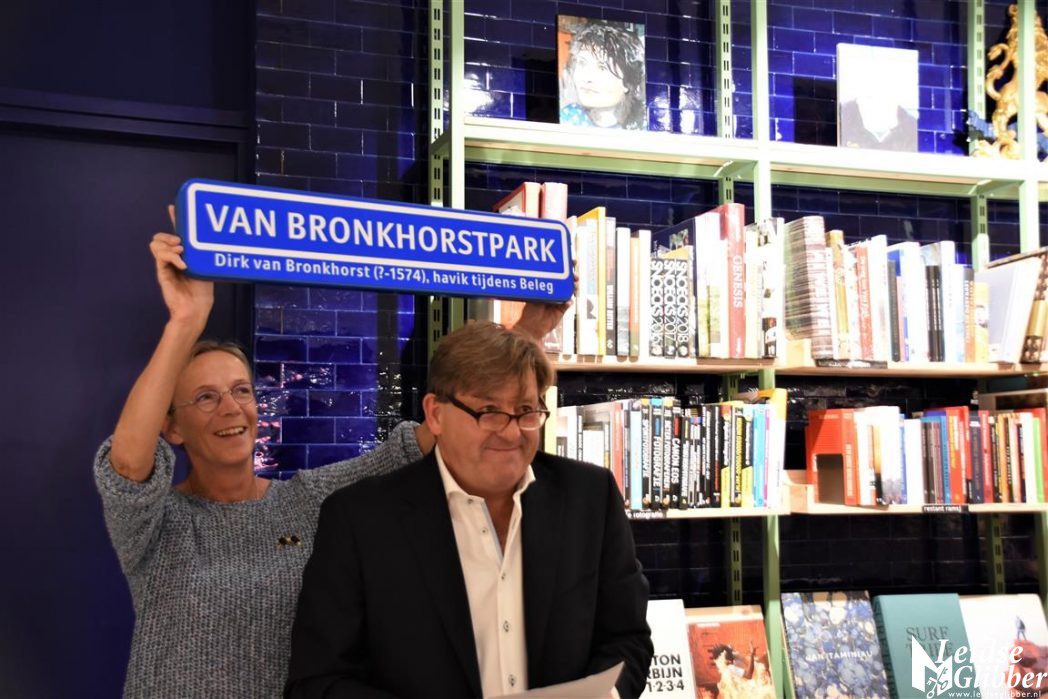 Burgemeester Henri Lenferink nam het eerste boek en het bordje in ontvangst en beloofde zijn best te doen bij de Straatnamencommissie.