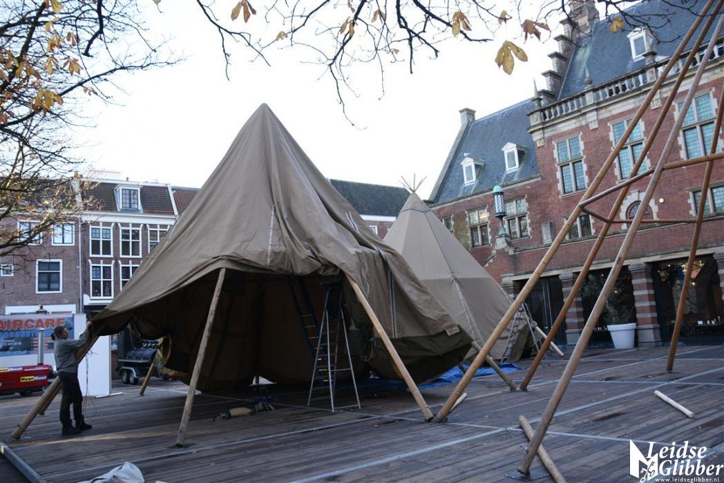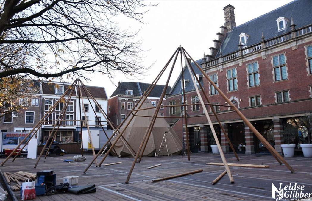 Op het Stadhuisplein wordt hard gewerkt om BARR op te zetten, een Noors Vikingrestaurant dat de komende weken op het Stadhuisplein staat.