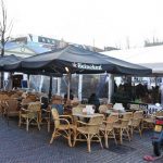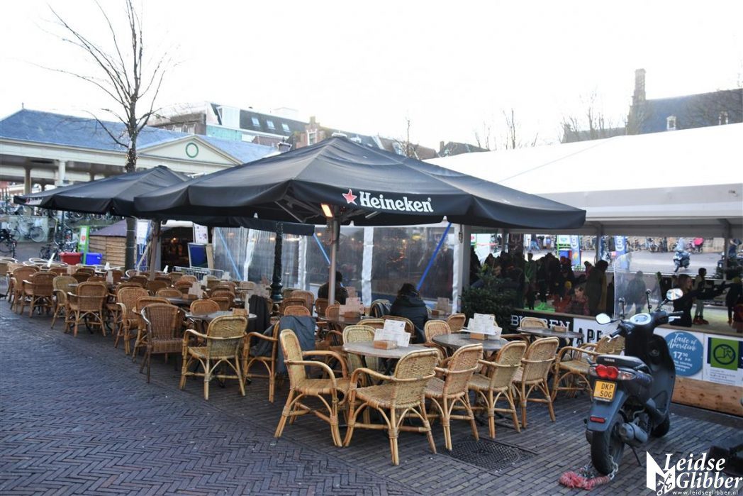 Het is helaas net even te koud om op het terras te gaan zitten, maar tegen de gevel is het goed te doen.