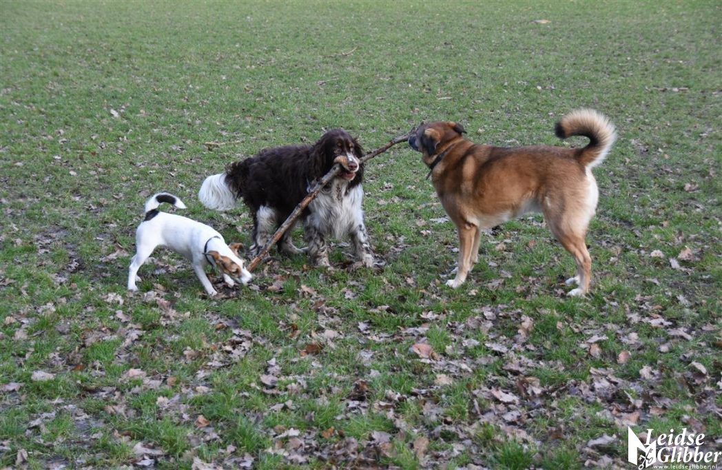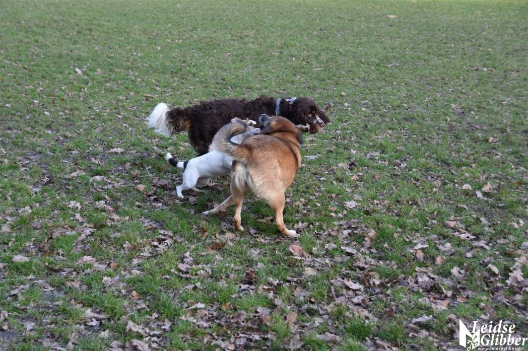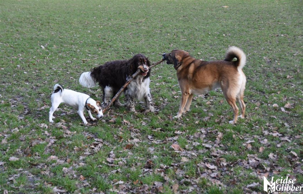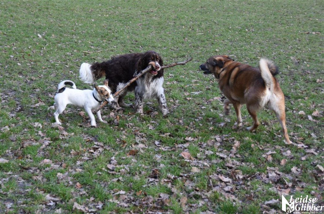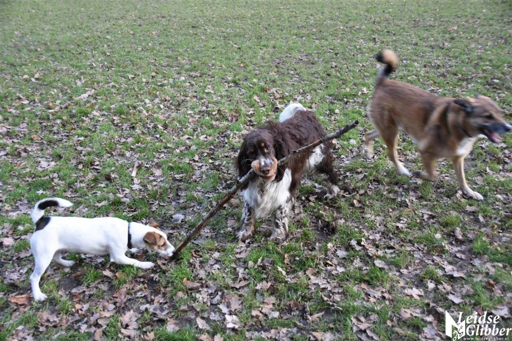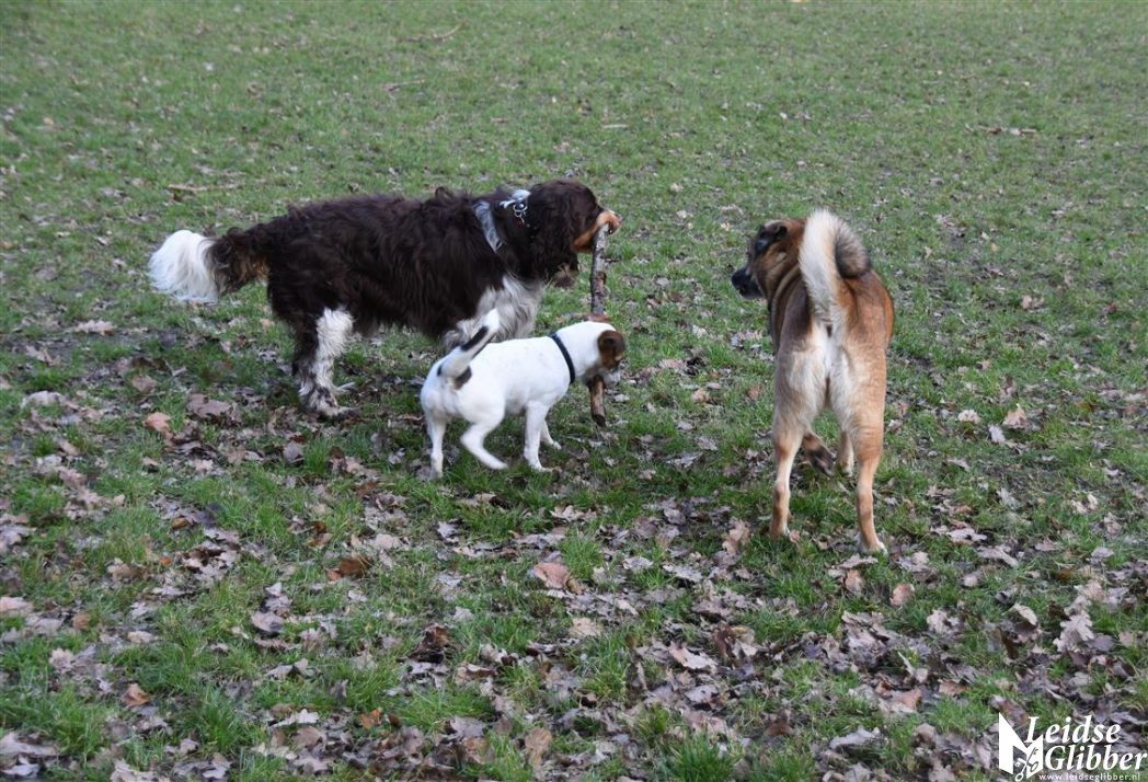 Woef, we hebben geloof ik wat te hard geblaft, in een mum van tijd kwamen alle honden in het park een kijkje nemen. Maar toen hadden we de tak natuurlijk al verstopt 🙂