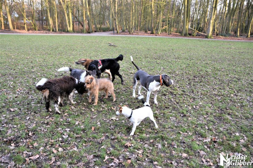 Happy en haar honden vriendjes en vriendinnetjes genoten van het vroege voorjaar in De Leidse Hout