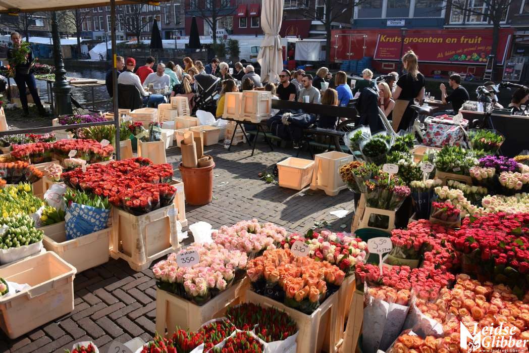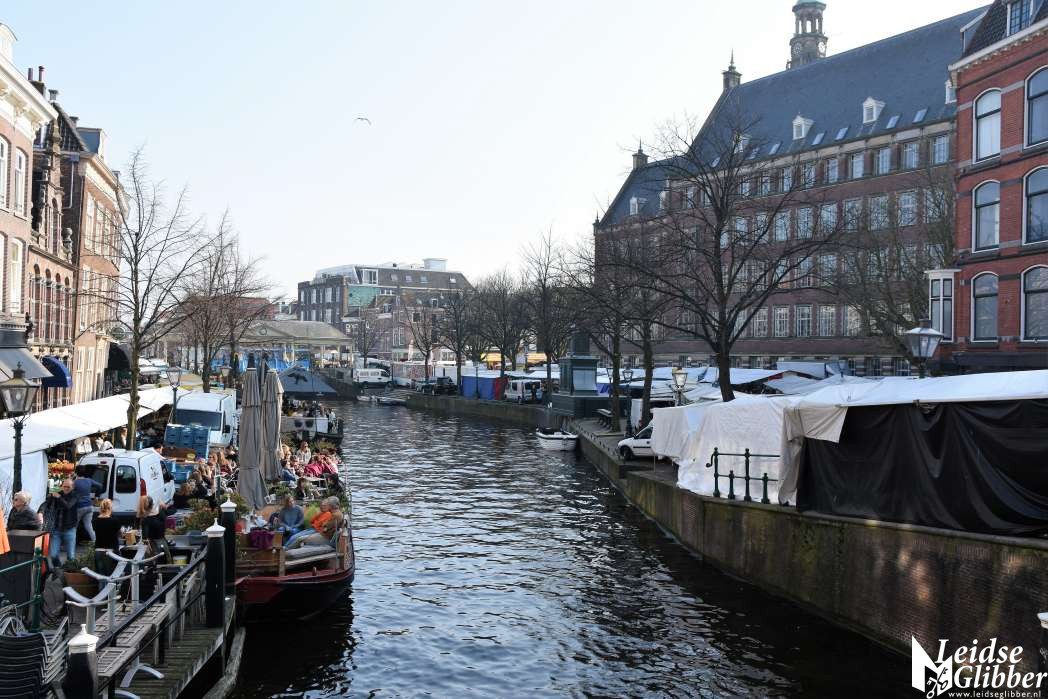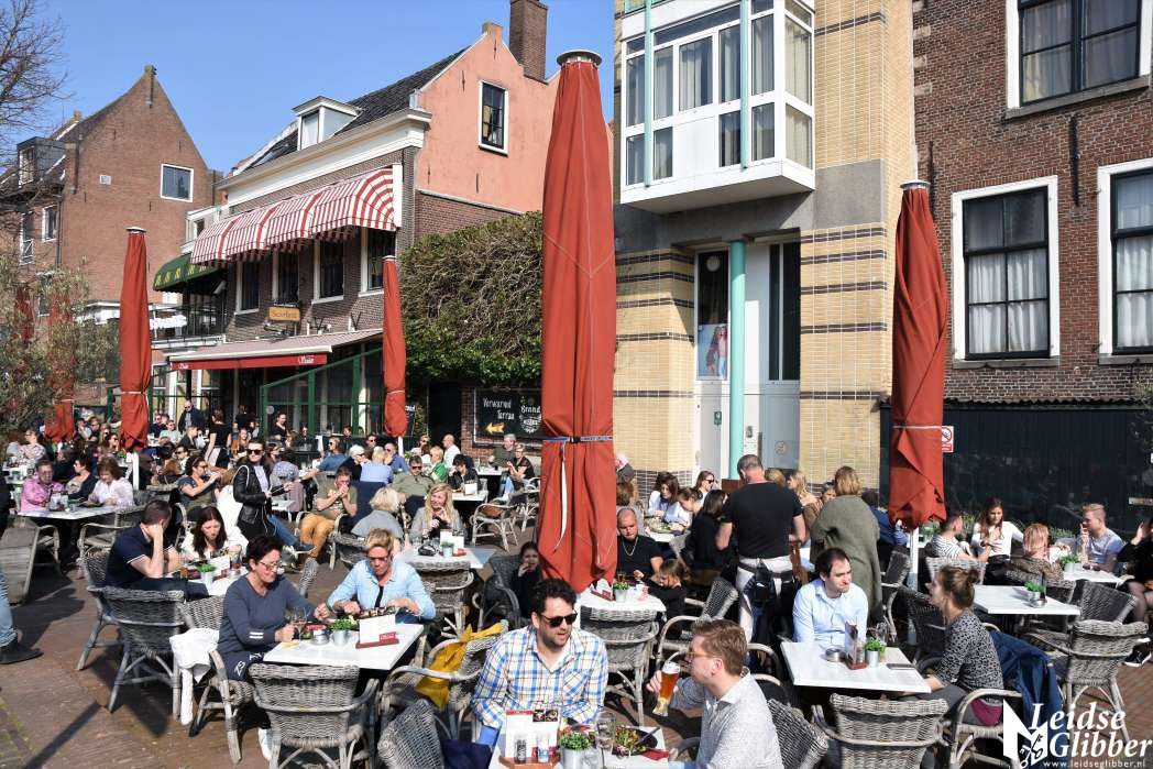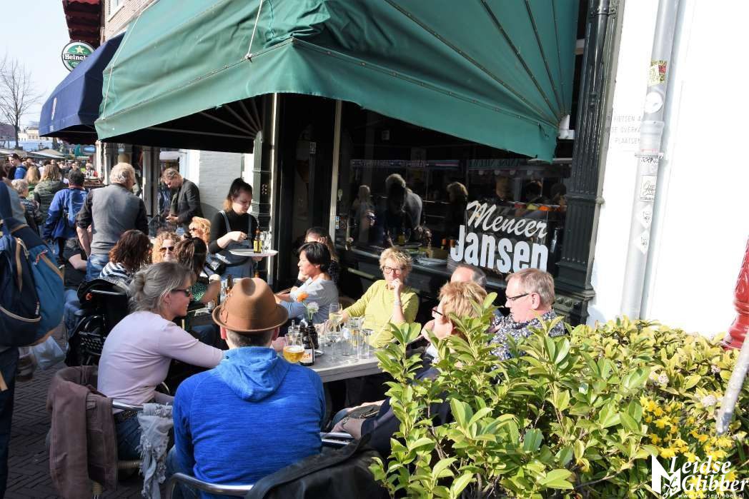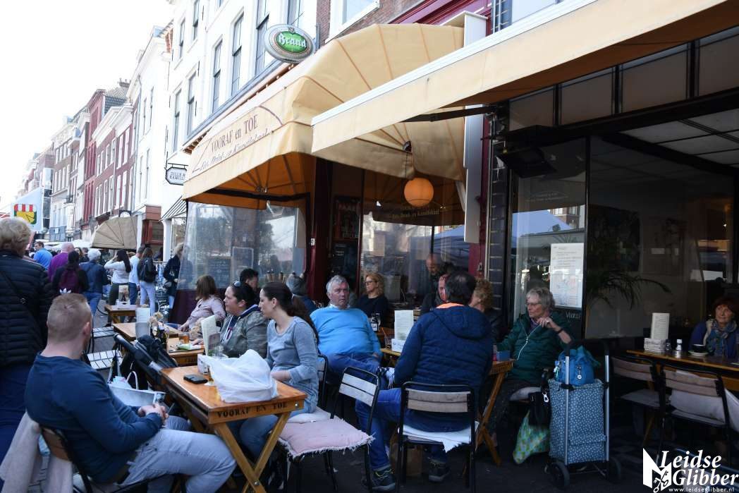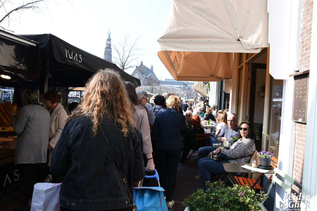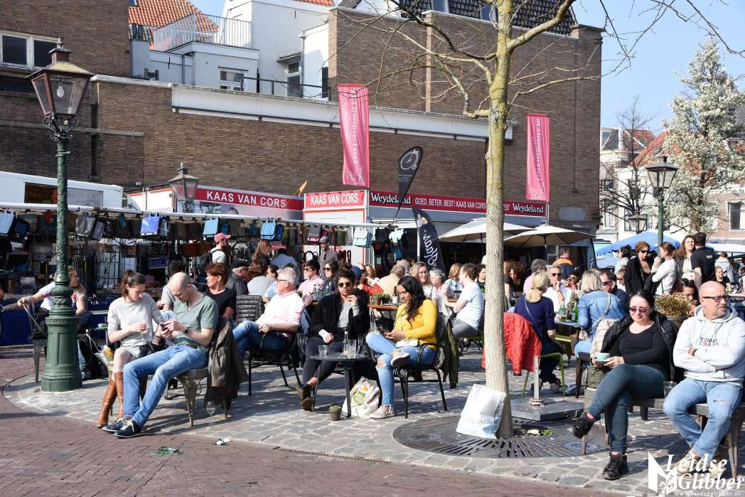 Druk in het centrum en op de markt en volle terrassen, het leek wel lente in Leiden