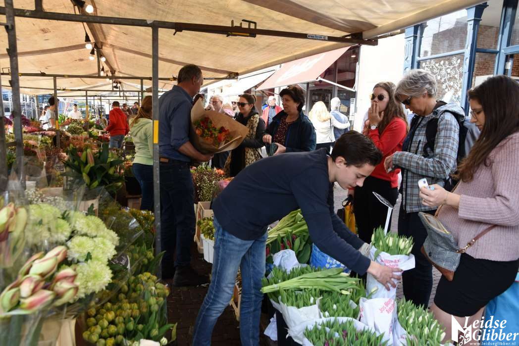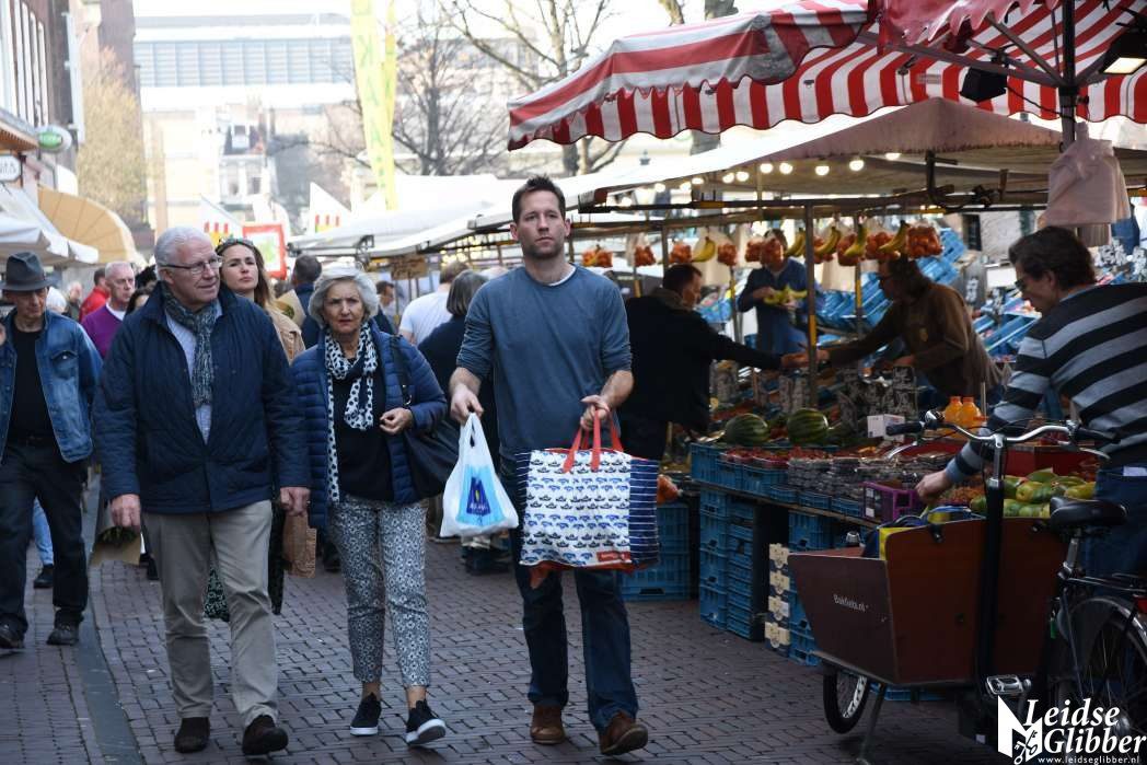 Het leek wel of half Leiden even boodschappen deed op de markt.