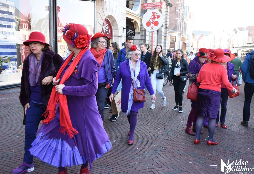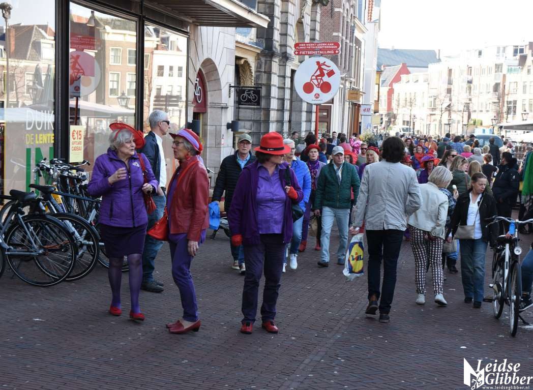 De dames van de Red Hat Society brachten zo te zien ook weer eens bezoek aan Leiden.