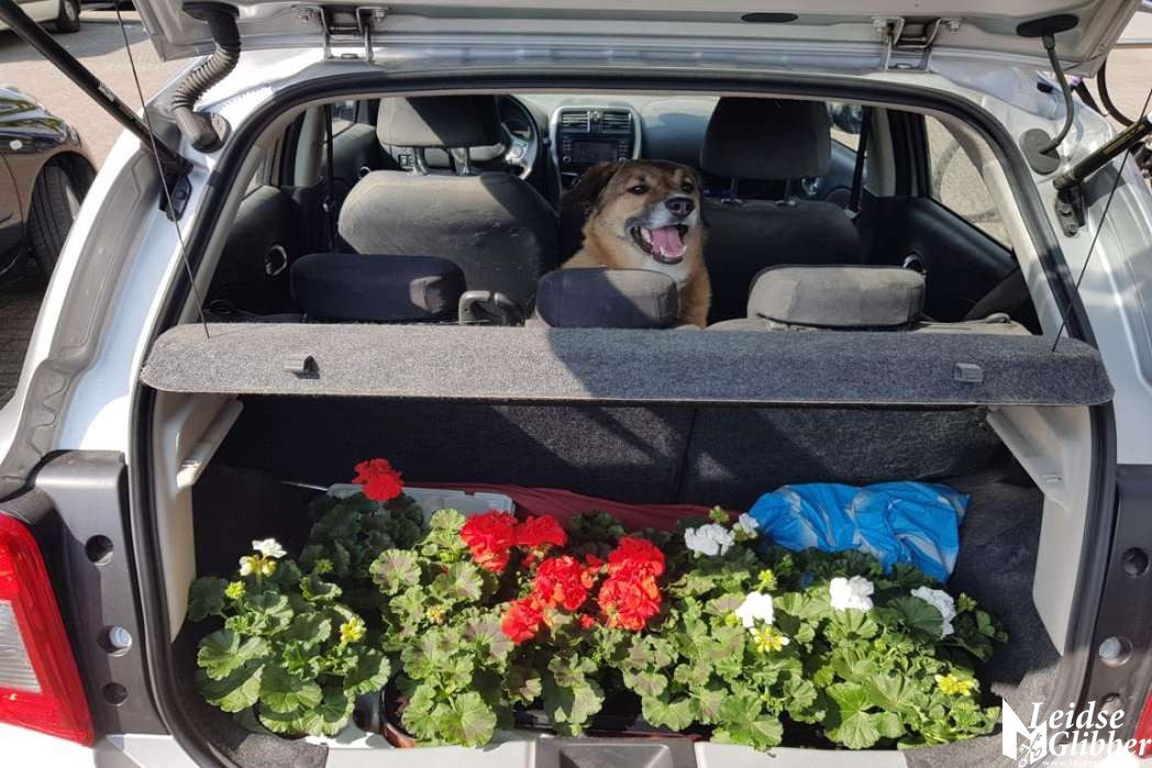 Wauw wat heb jij weer mooie balkon. Jou balkon ziet ook aardig groot uit. Je gaat weer gezellig maken met bloemen. Je hond in de auto zo schattig om te zien. Bij ons is al paar weken geleden gebeurd. Als viooltjes dood gaat. Da komt ook wat jij hebt erin staan. Genieten. Fijne dag.