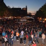 Een half uurtje later stroomde overal in de stad de straten en de pleinen vol zoals hier bij de Burcht.