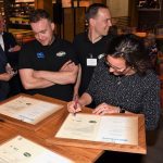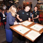 In het nieuwe restaurant zaten diverse vertegenwoordigers uit de politiek, ministerie en bedrijfsleven om de uitreiking van de praktijkverklaringen bij te wonen en daarna een paneldiscussie over deze pilot te volgen.