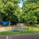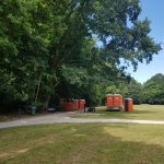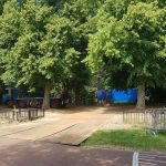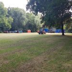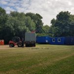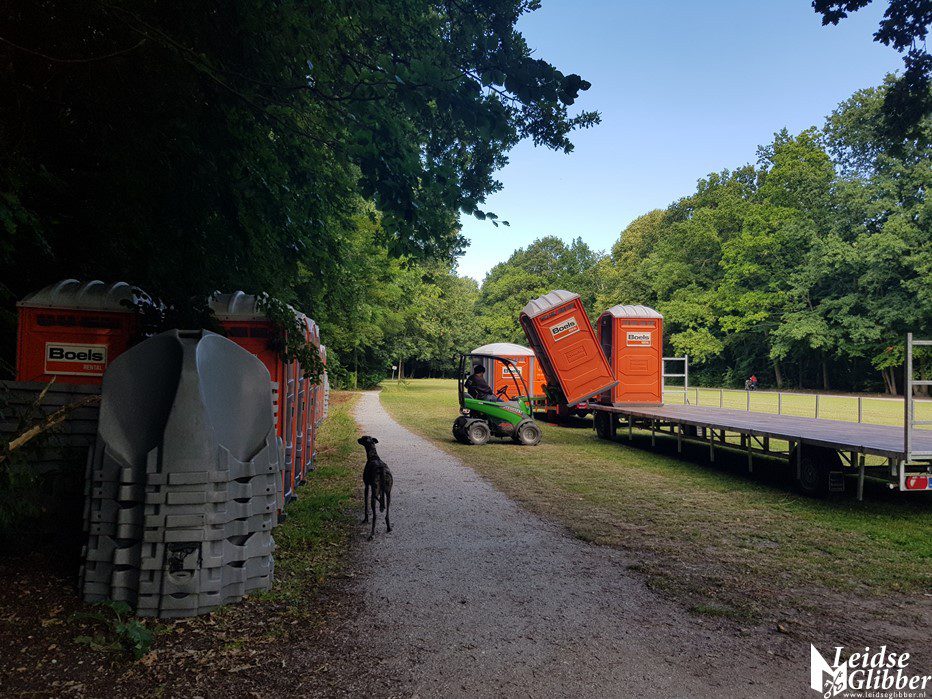 Er wordt druk gewerkt in het park en leveranciers beginnen af en aan te rijden, containers, tenten, dranghekken en natuurlijk toiletten. In 3 dagen tijd wordt hier een heel festivaldorp uit de grond gestampt.