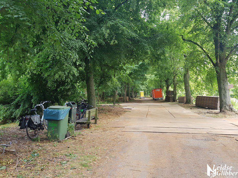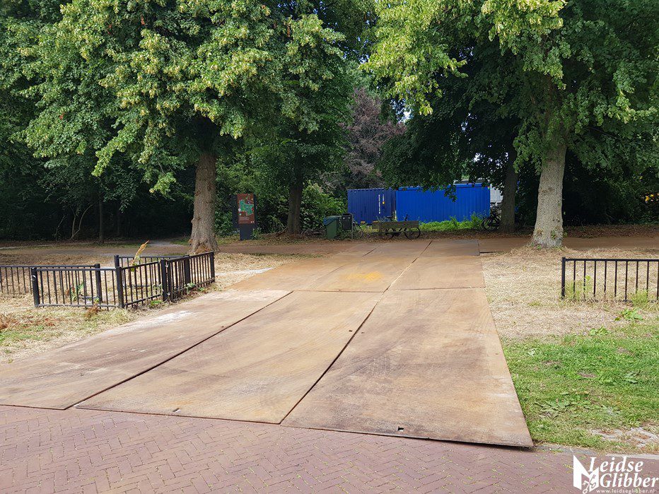 Zelfs de zijpaden waar alleen zo nu en dan een heftruck overheen moet hebben voor de zekerheid een paar rijplaten.