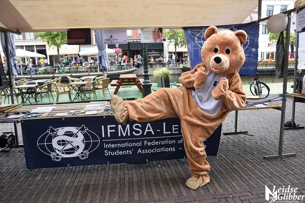 De IFMSA, International Federation of Medical Students Assosations, organiseert elk jaar het Teddy Bear Hospital in het LUMC, vandaar dat ze ook met de beer op de markt stonden.
