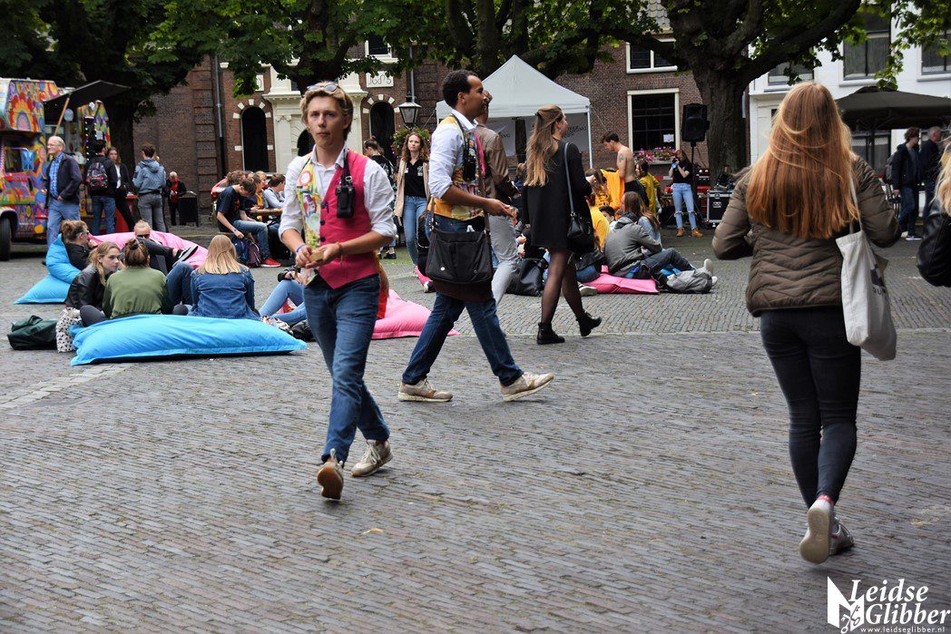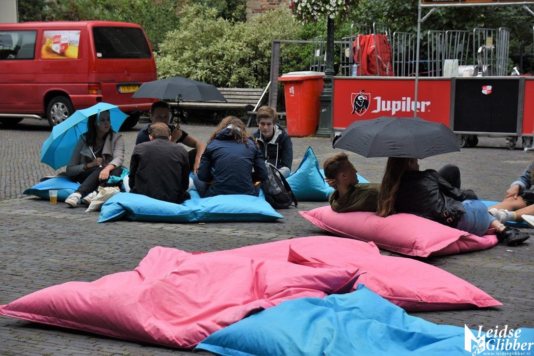 In het midden van het plein lagen zitzakken om een beetje uit te rusten van de eerste 2 dagen EL CID. Helaas begon het om 5 uur te regenen waardoor het plein snel leegliep.