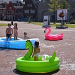 Gelukkig waren er snel kinderbadjes geregeld en samen met de fonteintjes werd het toch nog een koele middag en viel het springkussen feest niet in het water.