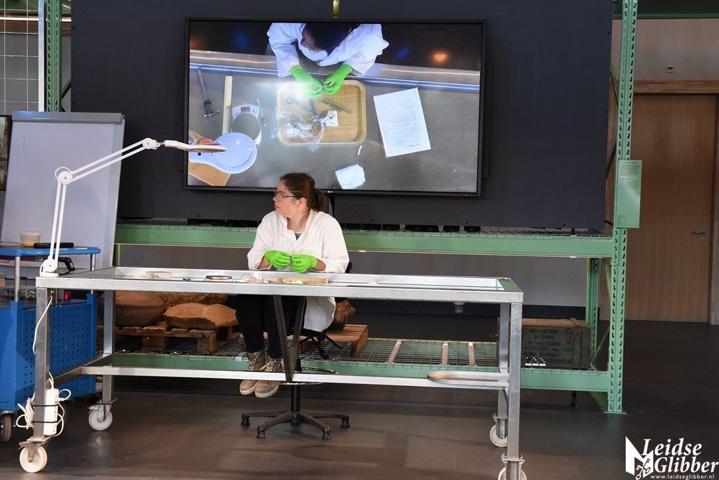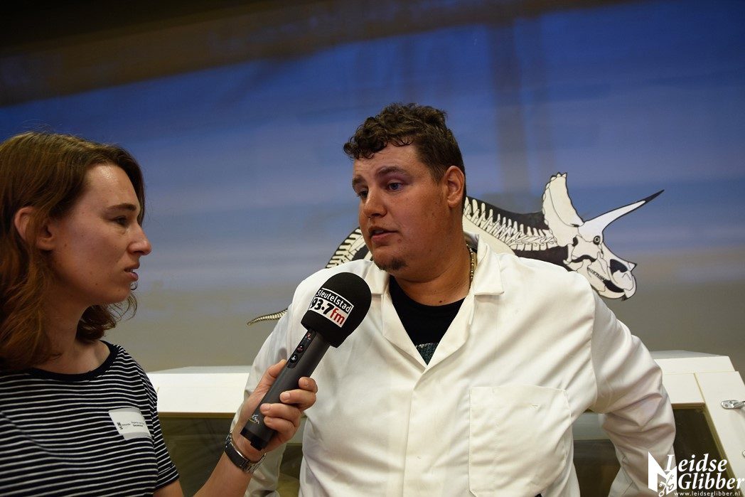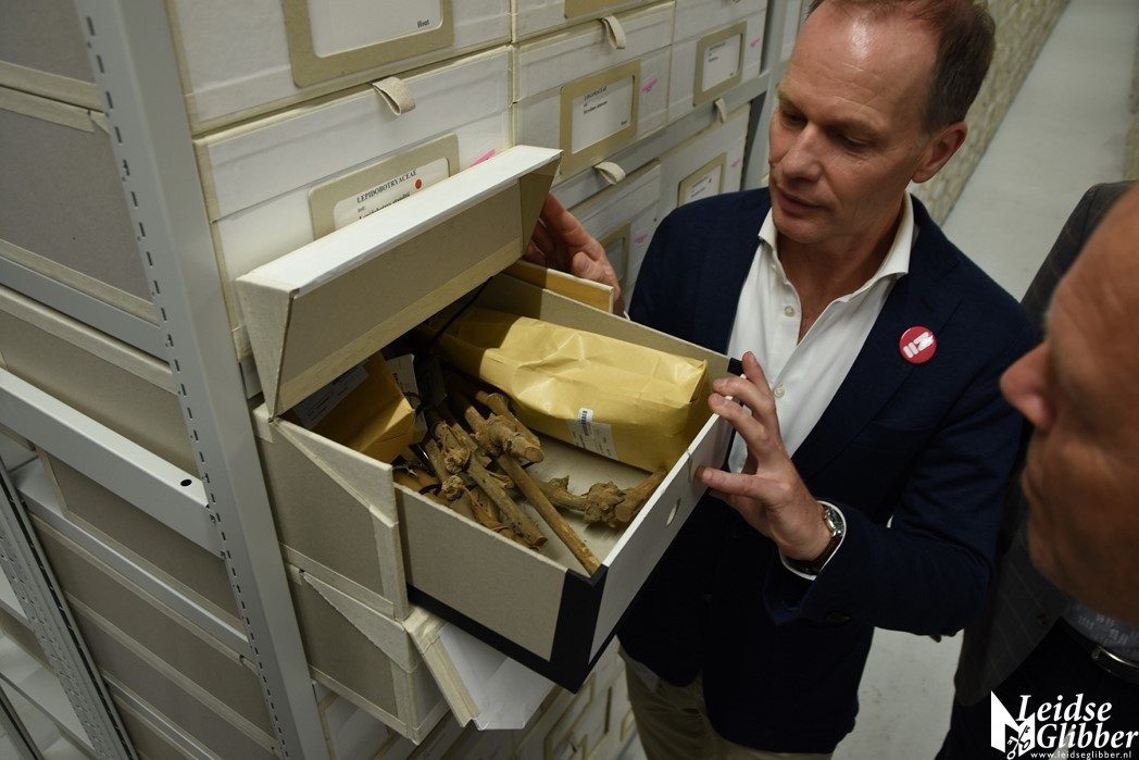 Preparateur Martijn Guliker liet ons zijn werkplek in de LifeScience afdeling zien. Een van zijn voormalige collega’s, waarmee hij naar Amerika geweest is, werkt nu in Zwitserland en zag nu zijn eigen opgravingen weer terug.