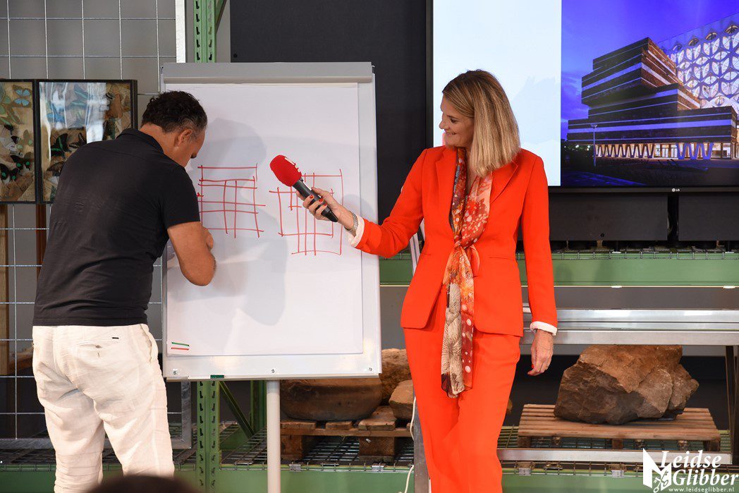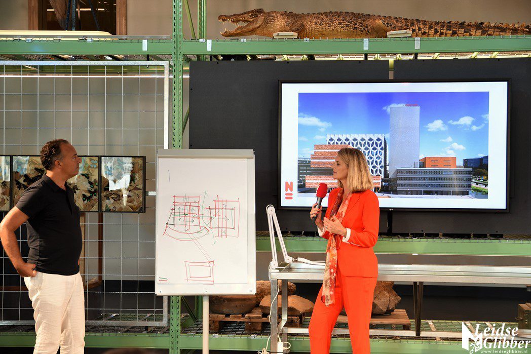 Architect Michiel Riedijk tekende het voorbeeld hoe zijn kantoor tot dit ontwerp van het gebouw gekomen is en wat de achterliggende gedachte is.