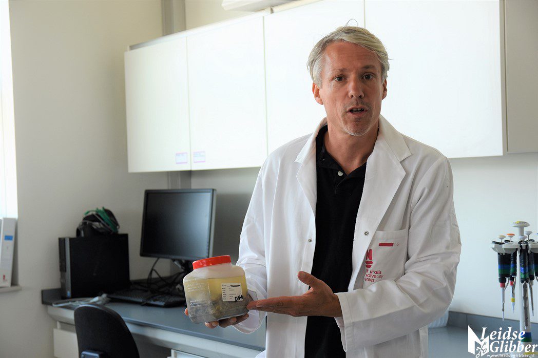 In de verschillende laboratoria wordt veel onderzoek gedaan, onder andere naar diverse dna sporen van insecten in een schepje zand uit de Noordzee.