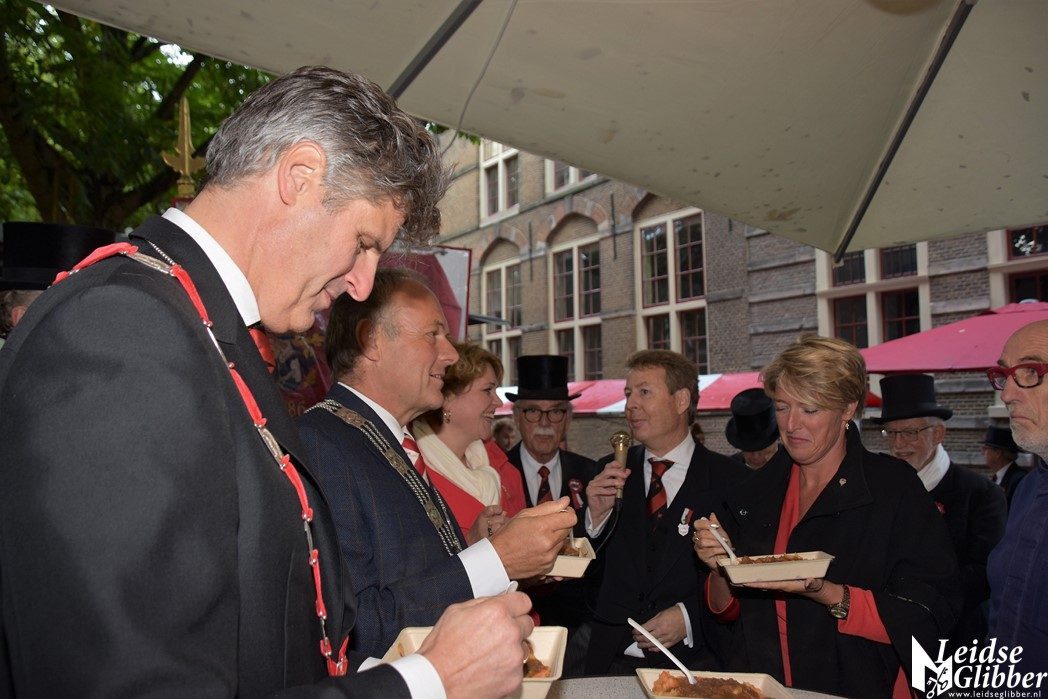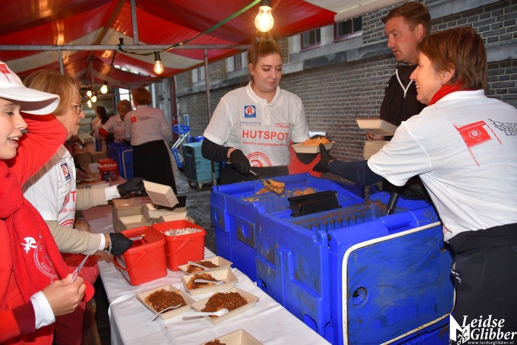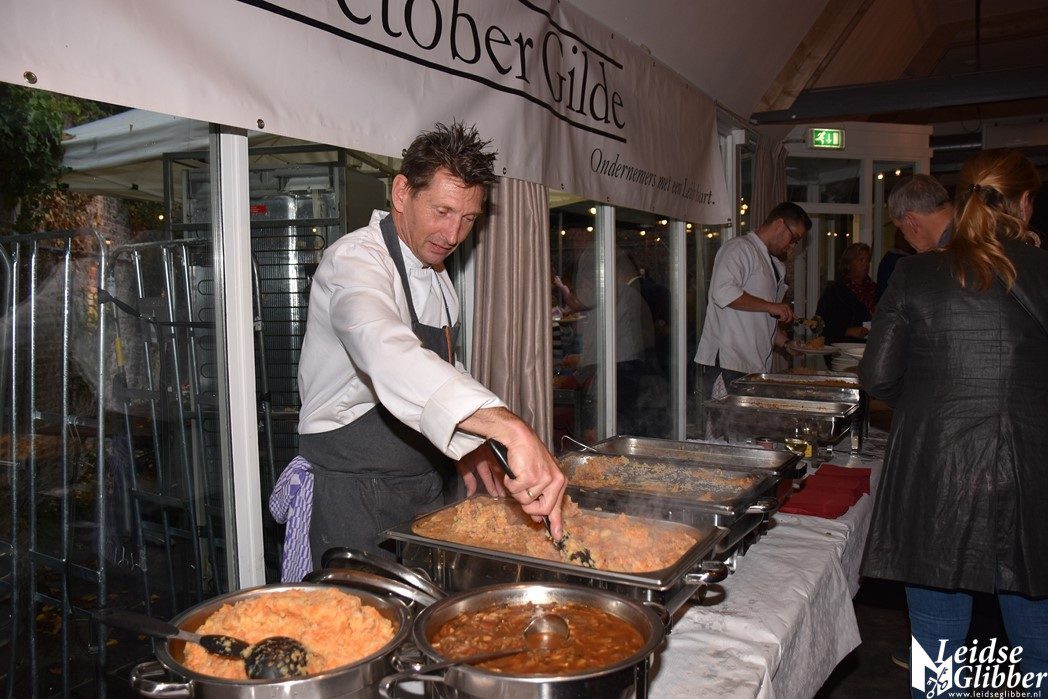 De Hutspotmaaltijd wordt aangeboden door het 3 October Gilde, dat bestaat uit ondernemers met een Leids hart. De hutspot wordt al 27 jaar gemaakt door slagerij Groeneveld uit Wassenaar, scheidend Gilde voorzitter Gerda Schukking bedankte slager Groeneveld voor de jarenlange samenwerking.