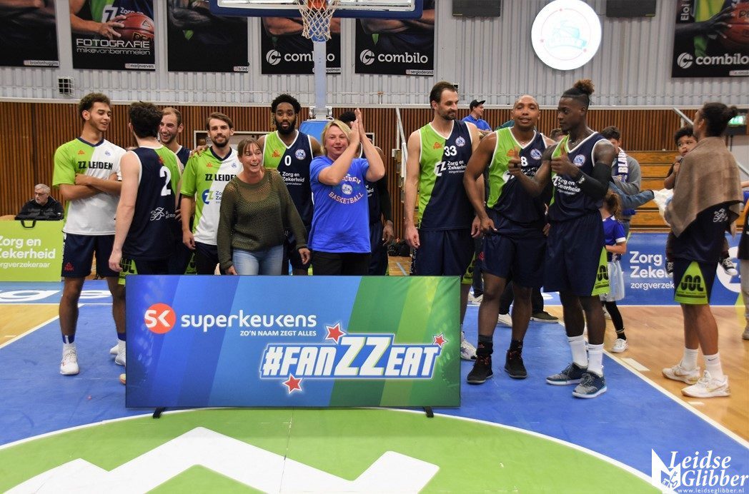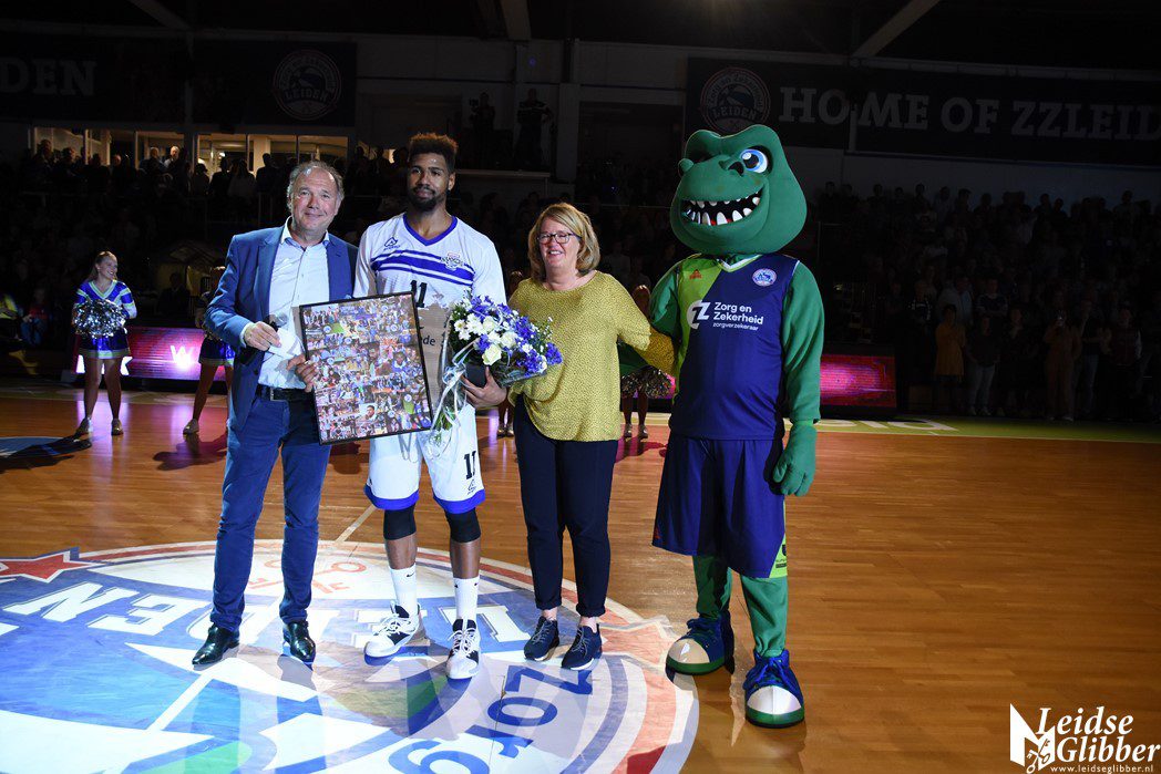 Voorafgaand aan de wedstrijd werd Mohamed Kherazzi bedankt voor 8 jaar grote inzet voor ZZ Leiden. Hij speelt dit seizoen voor de tegenstander van deze avond Landstede Hammer Zwolle. Voor de statistici en getallenfreaks onder ons de volgende aansprekende getallen en feiten over Mohamed. 8 Seizoenen Zorg en Zekerheid Leiden. Teamprijzen: winnaar SuperCup 2011 en 2012, bekerwinnaar 2012 en 2019 en Landskampioen in 2013. Individuele prijzen: Defensive Player of the Year: 2015, 2016 en 2019, All Defense Team 2015 , 2016,2017, 2018 en 2019. Loopbaan bij ZZ Leiden: 353 wedstrijden, 8901 minuten, 2538 punten en 1940 rebounds.