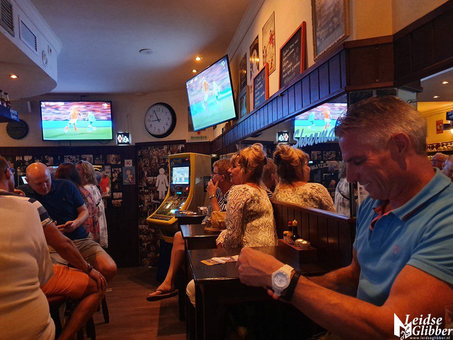 Het terras zat helemaal vol met uiteraard weer een grote delegatie Leidenaren.